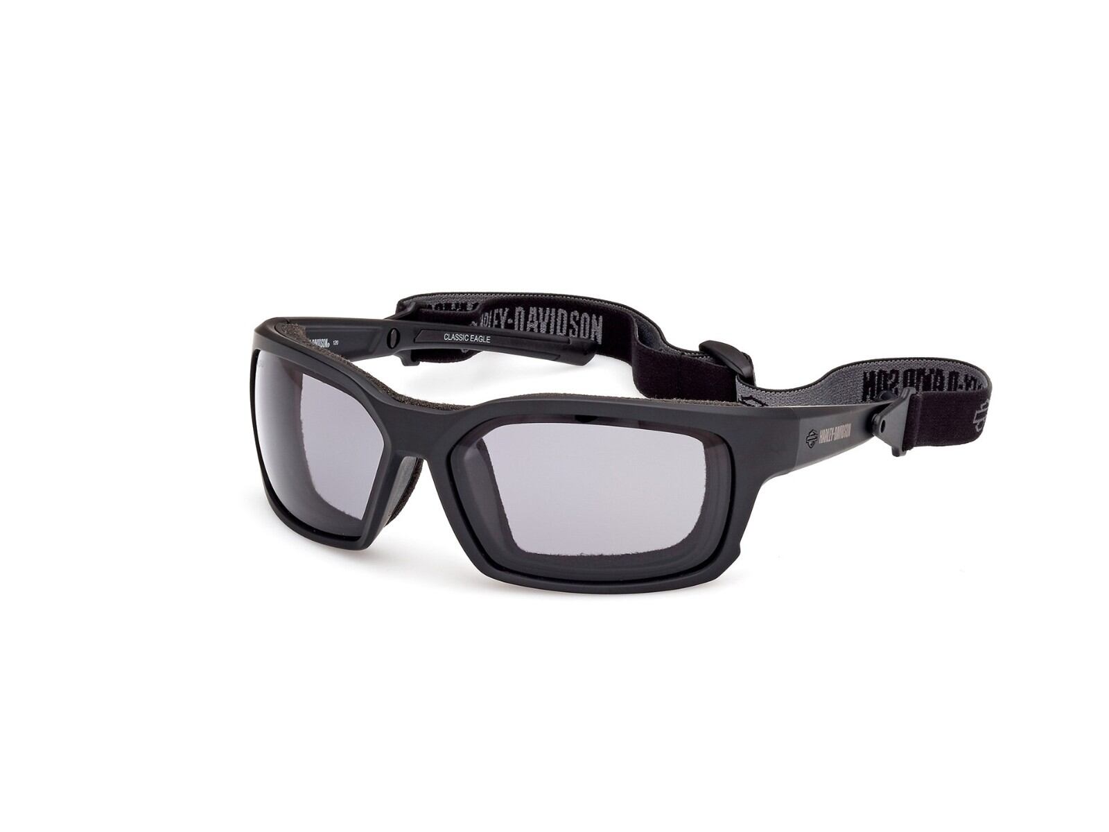 バー&シールド プレートとハーレーダビッドソンのロゴが付いたユニセックス スポーツ ラップ。バイクでの使用に適した EN 166 規格。取り外し可能なガスケット。スナップイン式の調節可能なヘッド ストラップ。8 ベース。中~大サイズの頭にフィット。光調整、偏光、色彩強化レンズ、曇り止め、UV4。